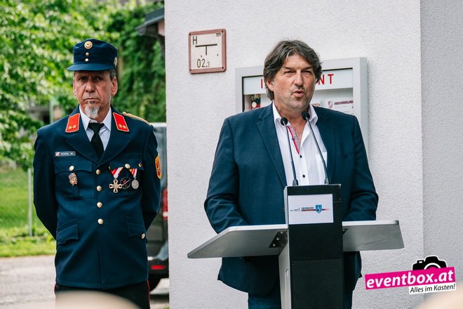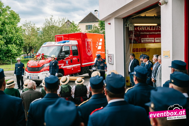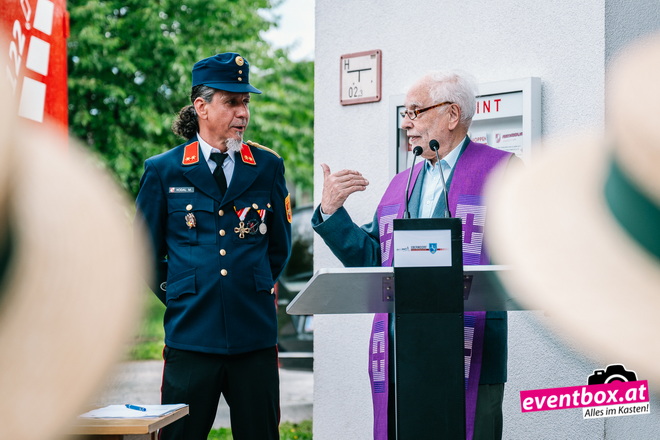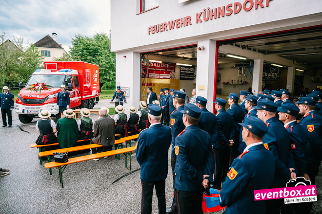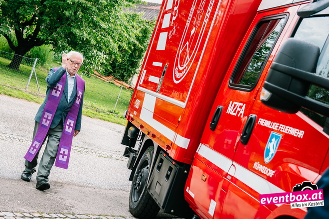 Segnung des Mehrzweck Fahrzeug durch Pfarrer Skuk, beim Dämmerschoppen in Kühnsdorf.